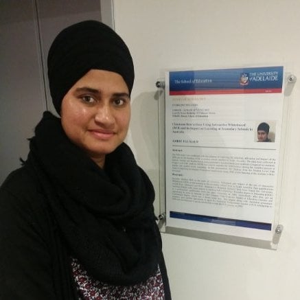 Dr Amrit Kaur is a recent PhD graduate in Education from the University of Adelaide. For her PhD in the School of Education, Dr Kaur investigated the adoption and impact of interactive whiteboard use on student learning. Her study involved 12 South Australian public and independent secondary schools, with 269 students and 30 teachers participating in the research.