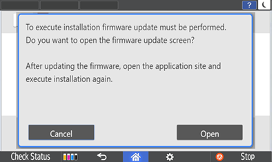- To update firmware, select Open and device will restart after firmware is updated.