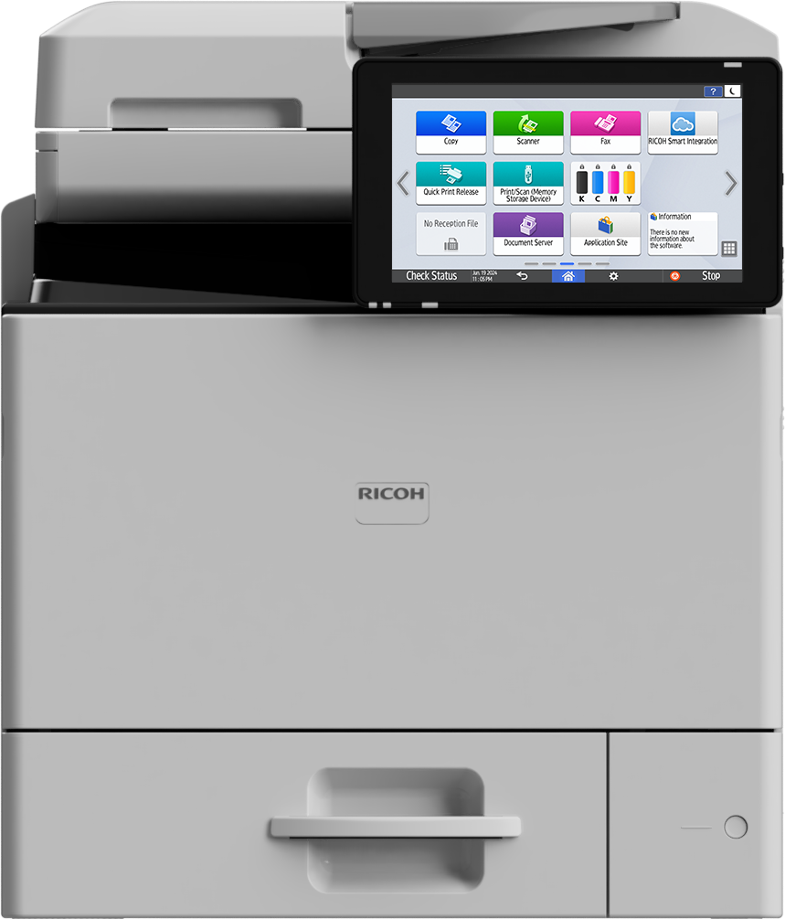 The IM C401F delivers crisp 1,200 x 1,200 dpi resolution prints at 43 ppm (black and white) and 40 ppm (colour) speeds, ensuring seamless productivity in the modern workplace. Its 10.1” Smart Operation Panel (G3) provides an intuitive, touch-friendly interface, aligning with Ricoh’s A3 MFPs for a consistent user experience.