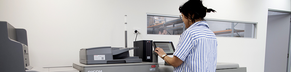 Ricoh Pro C5300S production machine with an EFI ES-3000 spectrophotometer to ensure that colour is consistent and imposition templates using EFI Fiery Impose to speed production time.