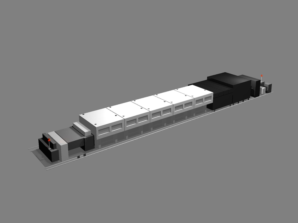 Rendering of the inkjet printing system under developmentRicoh applied its inkjet technology to lithium-ion secondary cells’ production, enabling them to come in an almost limitless number of shapes and sizes. A digital inkjet system prints cell material only onto the area required. This allows secondary cells to be produced for many different applications in any shape or size and, at the same time, minimizes any wastage.