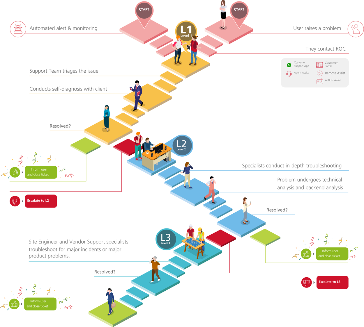 From individual IT technical issues to complex company-wide problems, ROC’s IT Service Delivery provides comprehensive support for the Ricoh APAC Digital Services Portfolio. By closely collaborating with OpCos’ local service desks, it ensures a seamless and exceptional customer experience. With a strong commitment to maintaining stable, cost-effective, and relevant IT infrastructure, ROC’s IT Service Delivery team plays a crucial role in facilitating optimal performance and success for businesses throughout the Asia Pacific region.