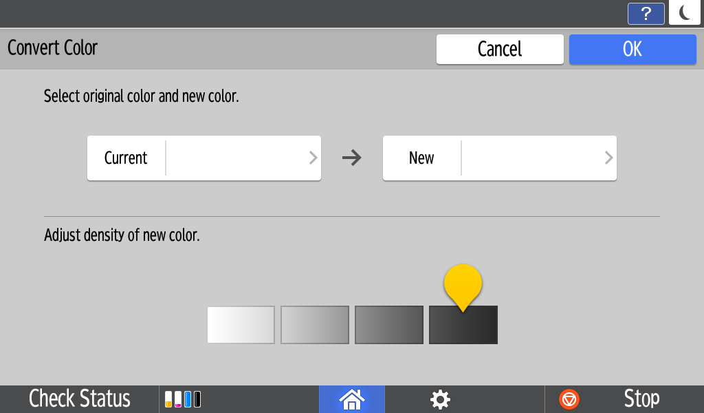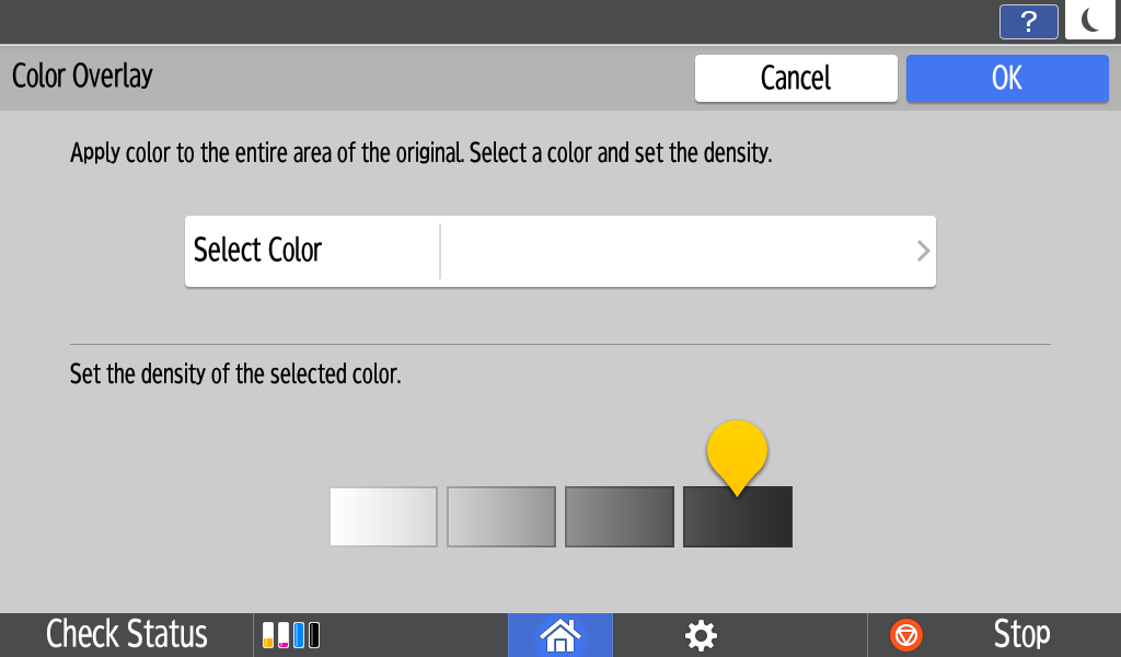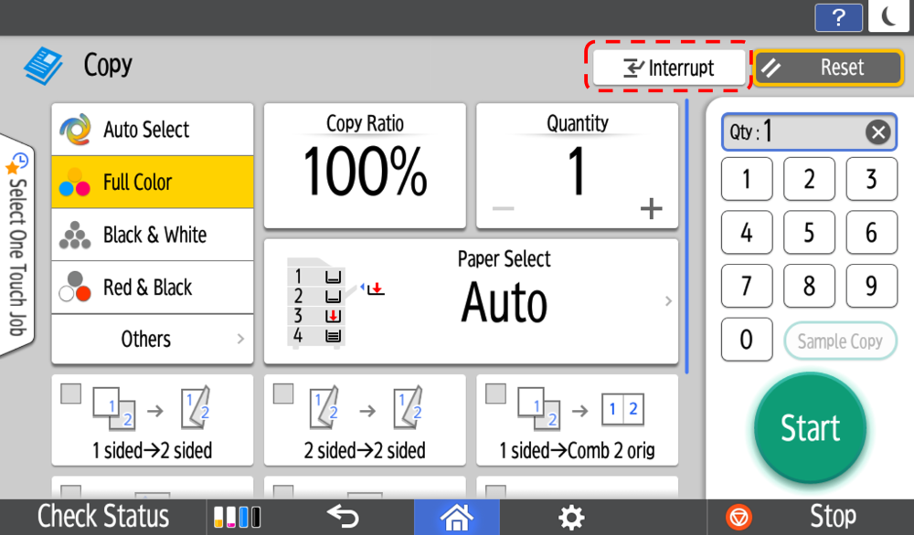An Interrupt button has been added to the Smart Copy app. The Interrupt button temporarily pauses the job in progress, allowing an urgent copy to made of another document.