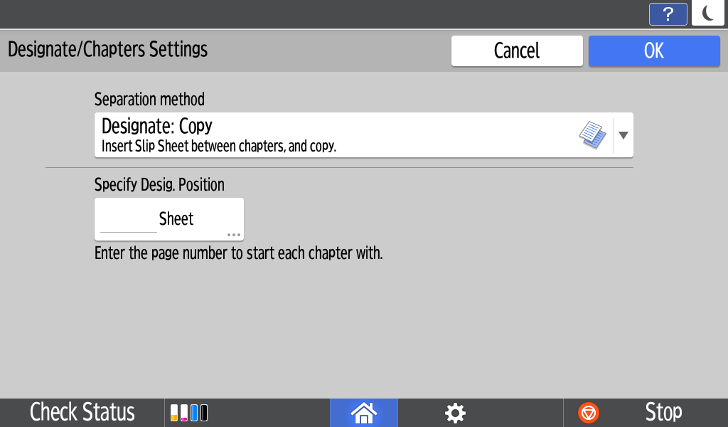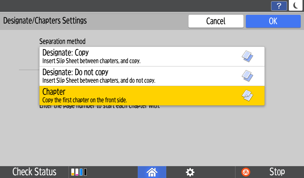 - Designate: Can copy the specified pages to the chapter separation paper.